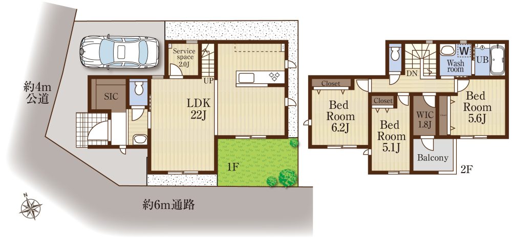 3SLDK+SIC+WIC+ガーデニングスペース+カースペース