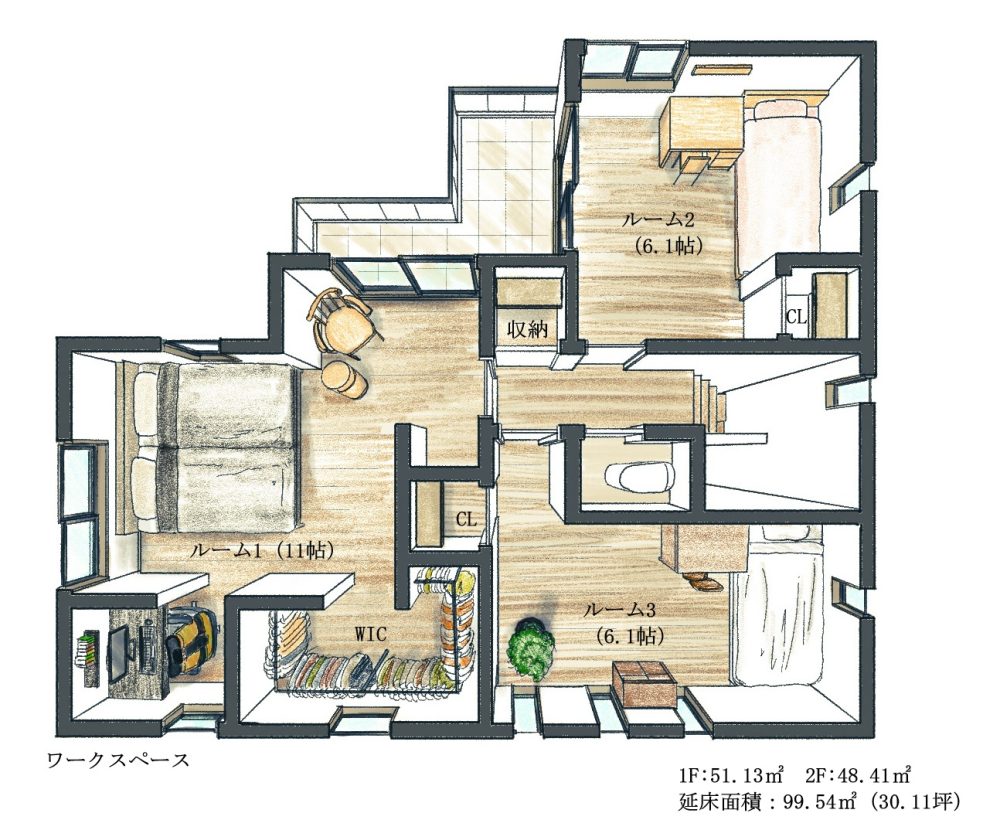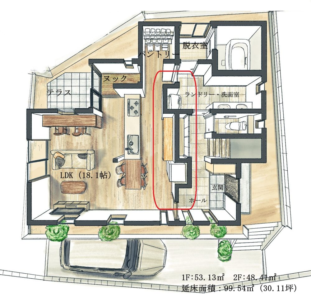 ■間取:3SLDK+パントリー+ランドリー+ワークスペース