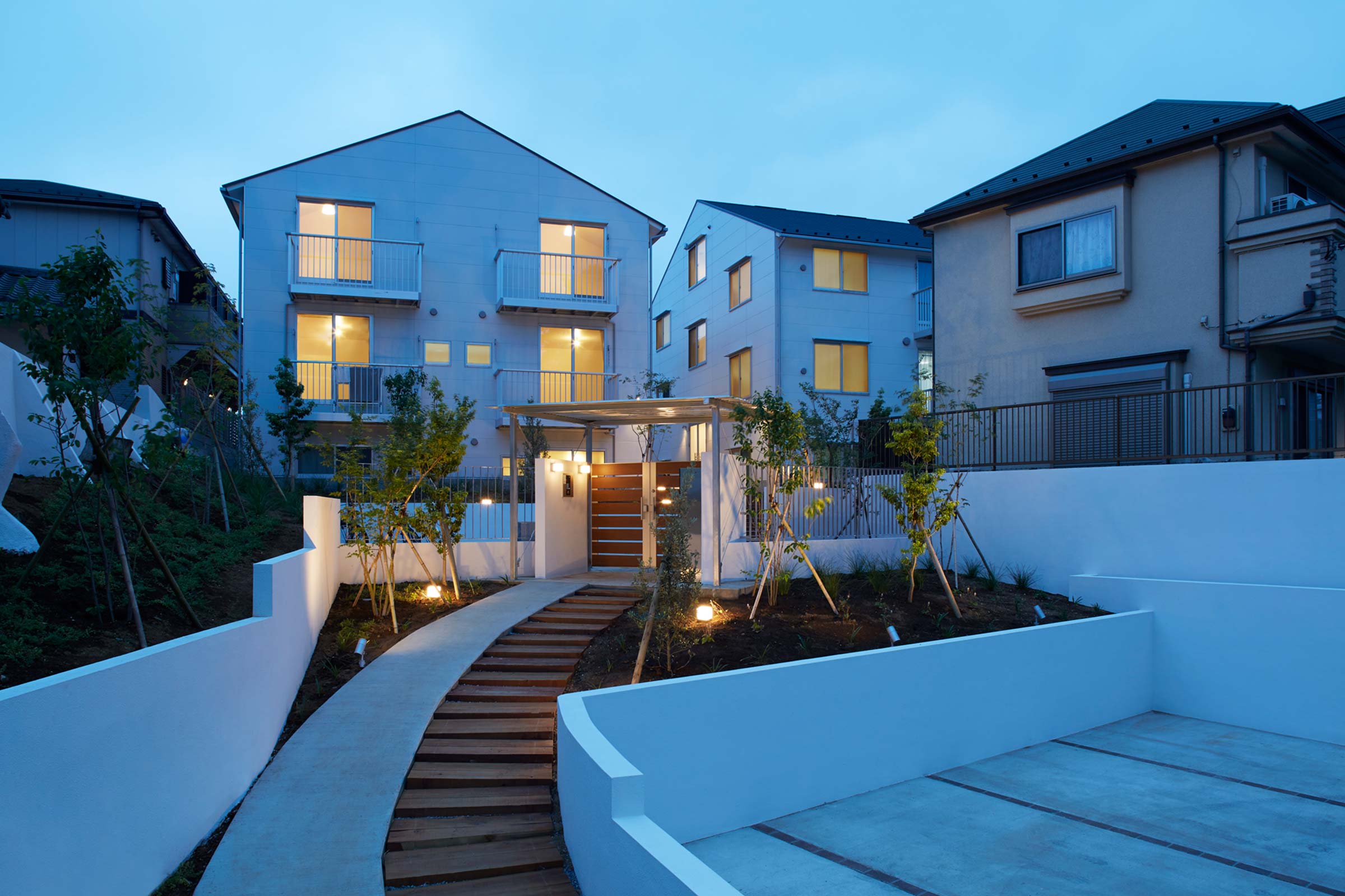 西船橋に建つ、風致地区の丘の上の14世帯の集合住宅。